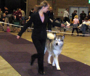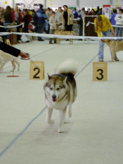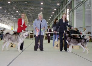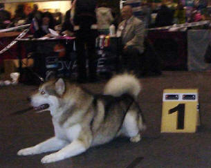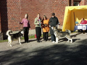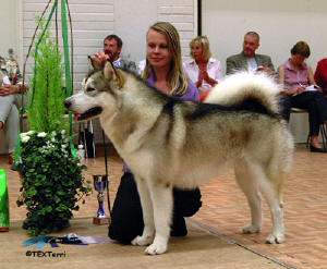26.9.2004 Vicky erikoisnäyttelyssä 80 malamuutin joukossa. Valioluokka on juuri voitettu. Vicky has just won the champion class in 2004 Specialty show.